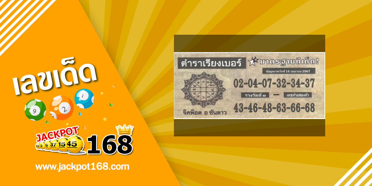 หวยตำราเรียงเบอร์ 16/4/67 มาตรฐานทีเด็ด แนวทางหวยงวดนี้