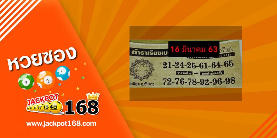 หวยปักหลักสิบล่าง 16/3/63 ชุดนี้จัดไป ฟันธงเลขเด่นเข้าทุกงวด