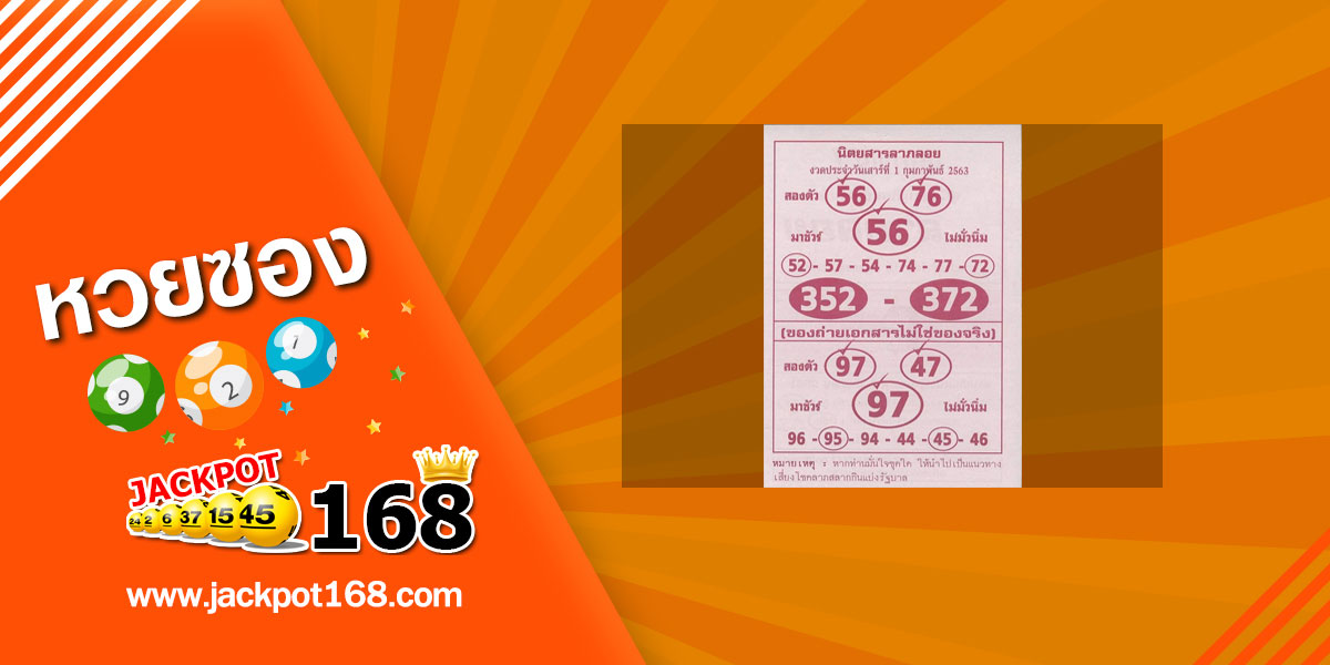 หวยเด็ดงวดนี้ เว็บไซต์ของเราขอนำเสนอ หวยแต๋วจ๋าพารวย 1/2/63 แจกเลขรวยประจำงวดนี้ ชุดเลขท้าย 3 ตัวบน และ 2 ตัวล่าง จัดมาให้คอหวยได้นำไปใช้พิจารณาประกอบการตัดสินก่อนซื้อสลากินแบ่งรัฐบาลได้เป็นอย่างดี
