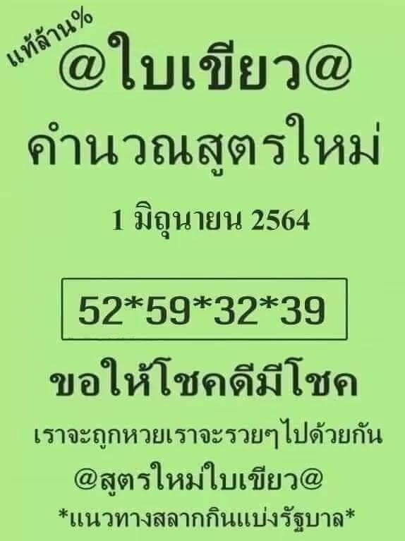 หวยใบเขียว 1/6/64