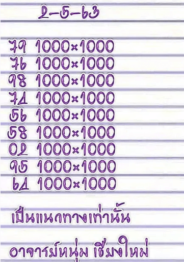 หวยอาจารย์หนุ่ม 16/5/63 หวยเด็ด อาจารย์หนุ่ม เชียงใหม่ แนวทางหวยรัฐบาลมาแรง สูตรนี้นาจับตามองคอหวยทั้งหลายห้ามพลาด เพราะให้เลขเข้าตรงเป้ามาแล้วหลายงวด สำหรับแนวทางที่อาจารย์หนุ่มให้มานี้เป็นชุดจับเข้าคู่เลขท้าย 2 ตัว บนและล่าง ใครที่ยังไม่มีเลขเด็ดถูกใจ ลองก็บชุดนี้ไว้เป็นแนวทางได้เลย ไม่แน่งวดนี้โชคอาจเป็นของคุณก็ได้