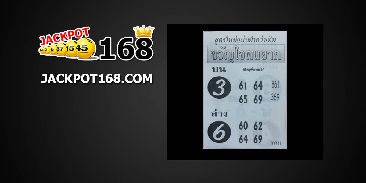หวยขวัญใจคนยาก 16/11/61 เลขเด็ดแนวทางสลากกินแบ่ง