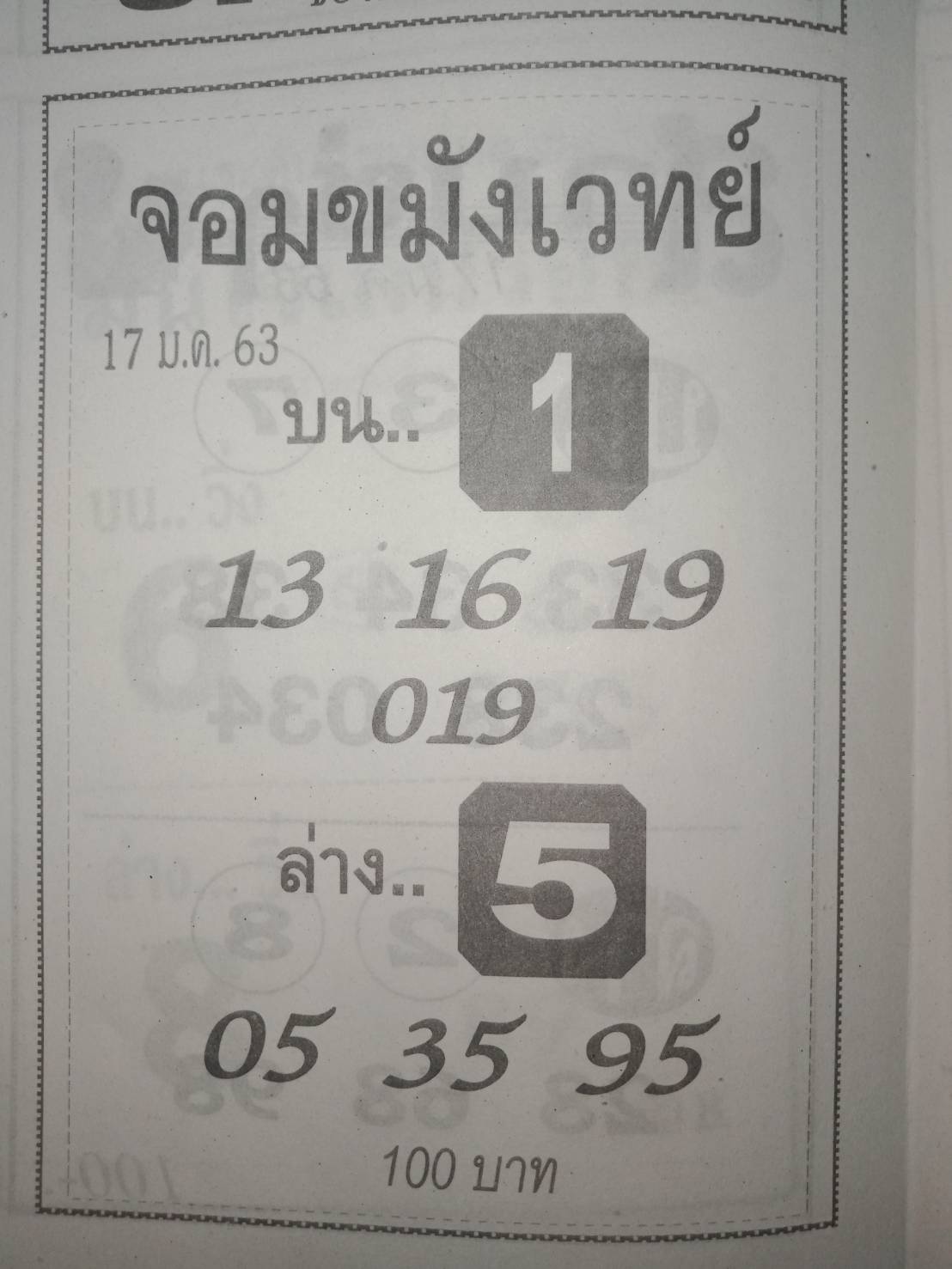 หวยจอมขมังเวทย์ 17/1/63 หวยเด็ดเลขเด็ดงวดนี้