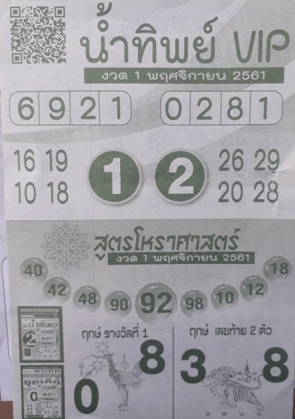 หวยน้ำทิพย์ 1/11/61 แจกเลขเด็ดจากหวยซองงวดนี้