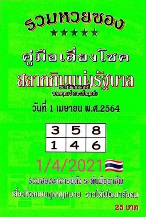 หวยปกเขียว 1/4/64 แหล่งรวมหวยซองดัง!