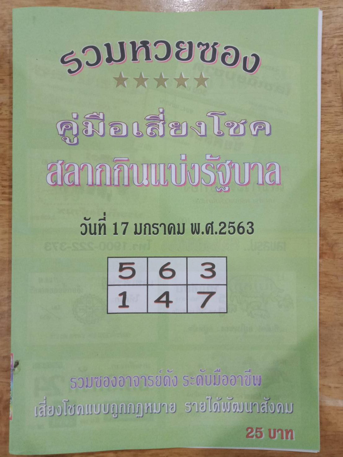 หวยปกเขียว 17/1/63 ชุดเลขเด่นงวดนี้
