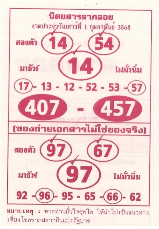 หวยลาภลอย 1/2/68 อัพเดทสูตรหวยแม่นๆ ชุดสามตัว และชุดสองตัว บน-ล่าง คำนวณมาอย่างดี มาชัวร์ไม่มั่วนิ่ม จากนิตยสารลาภลอย แหล่งรวมหวยซองงวดนี้ ล่าสุด สำหรับคอหวยหาเลขเด็ดหากท่านมั่นใจชุดใด ให้นำไปใช้เป็นแนวทางสลากกินแบ่งรัฐบาล พร้อมติดตามรวมเลขเด็ดอาจารย์ดัง เลขตาราง หวยไทยรัฐ ข่าวดังเลขเด็ดงวดนี้ ที่นี่
