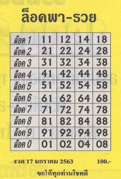 หวยล็อคพารวย 17/1/63 สูตรหวยรัฐบาลงวดนี้