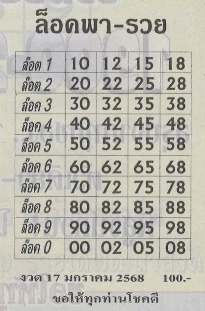 หวยล็อคพารวย 17/1/68 แนวทางเลขตาราง หวยเด็ดงวดนี้