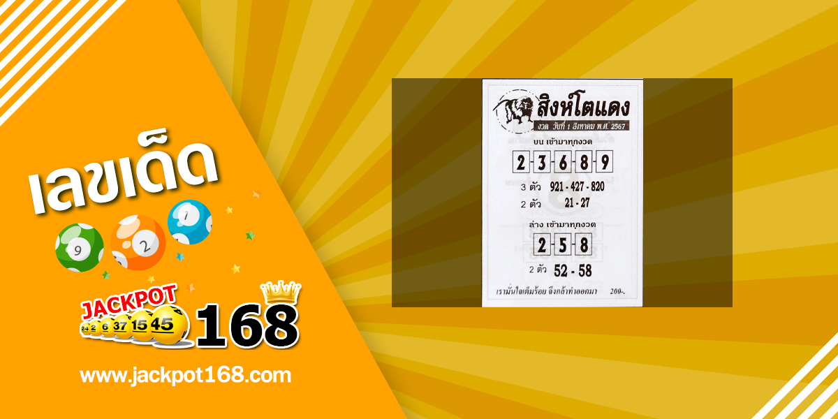 หวยสิงห์โตแดง 1/8/67 สรุปเลขเด็ด หวยซองแม่นๆ เข้าทุกงวด
