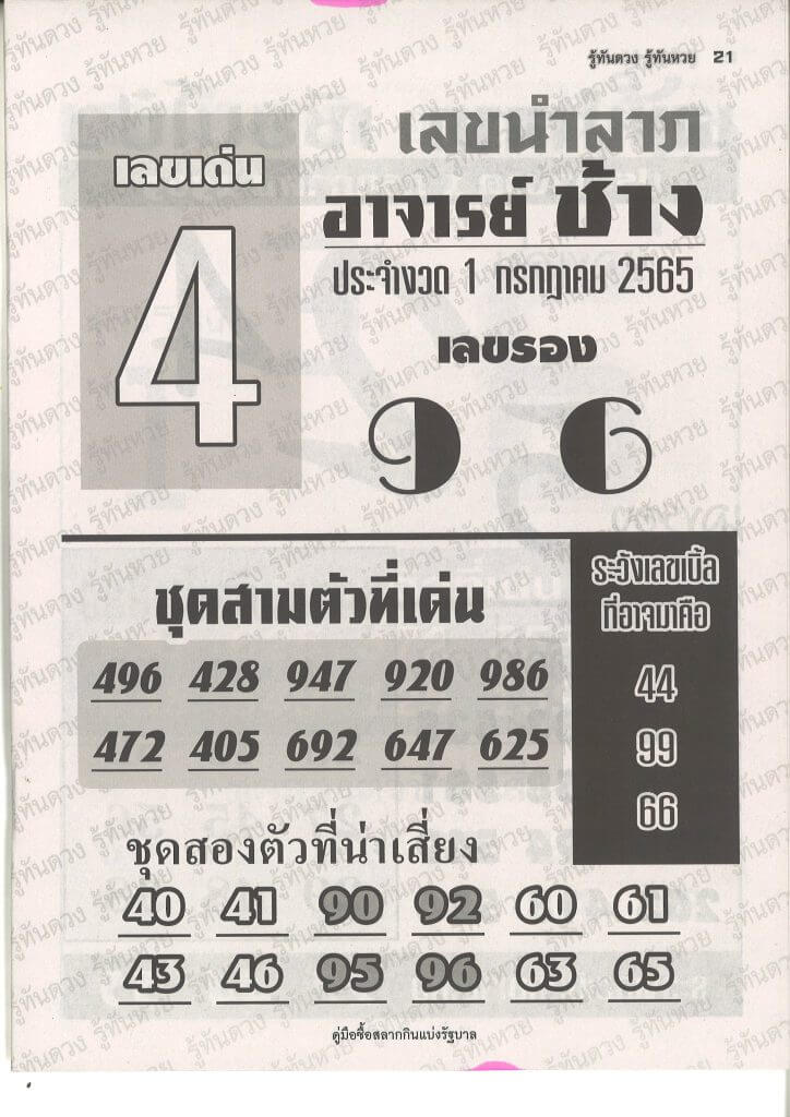 หวยอาจารย์ช้าง 1/9/65 เลขนำลาภอาจารย์ช้าง
