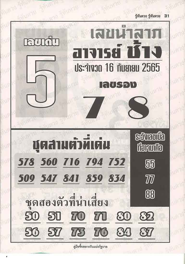 หวยอาจารย์ช้าง 16/11/65 เลขนำลาภอาจารย์ช้าง