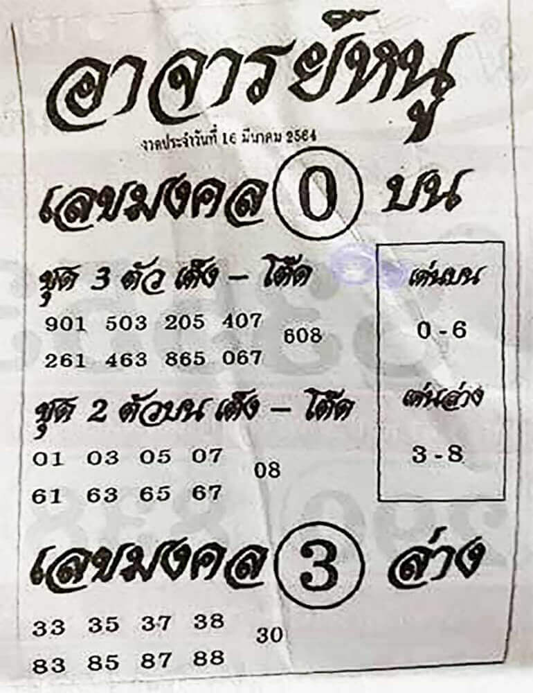 หวยอาจารย์หนู 1/4/64 สรุปหวยซองอาจารย์หนูงวดนี้