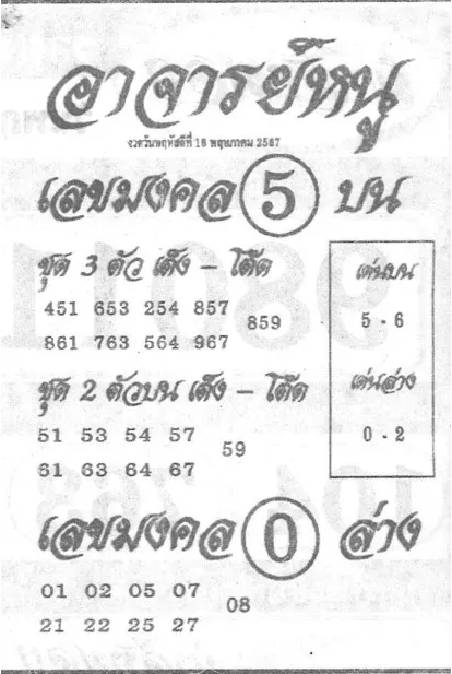 หวยอาจารย์หนู 16/5/67 เลขมงคล บน-ล่าง