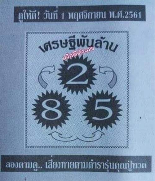 หวยเศรษฐีพันล้าน 1/11/61 เลขเด็ดหวยดังประจำงวดนี้