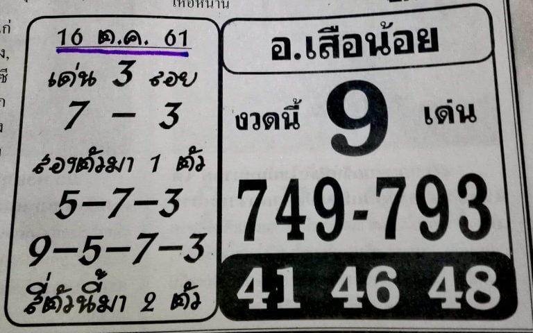 งวดนี้มาแรง หวย อ.เสือน้อย16/10/61