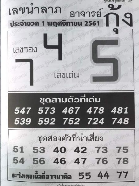 เลขนำลาภ 1/11/61 เลขเด็ดหวยซองดังประจำงวดนี้