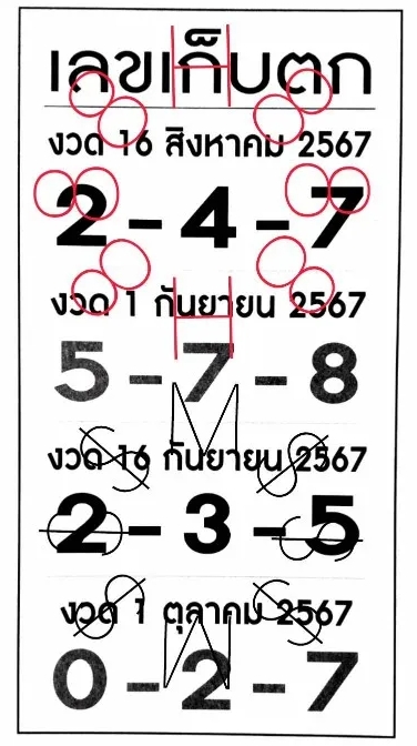 เลขเก็บตก 1/10/67 จับคู่เด่น บน-ล่าง หวยรัฐบาลแม่นๆ