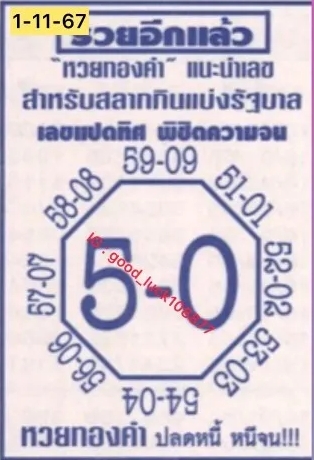 เลขเด่น 5 -0 จับคู่เลขท้าย 2 ตัว ได้แก่