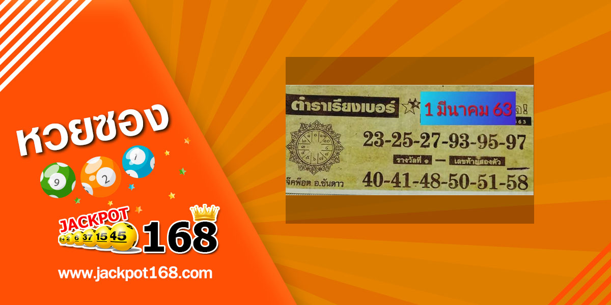 เลขเด็ด ซองดัง งวดนี้ขอนำเสนอชุดเลขตำราเรียงเบอร์ แนวทางเสี่ยงโชคลากกินแบ่งรัฐบาลไทย หวยตำราเรียงเบอร์ 1/3/63 งวดนี้แจกชุดสรุปรางวัลที่ 1 และรางวัลเลขท้าย 2 ตัว