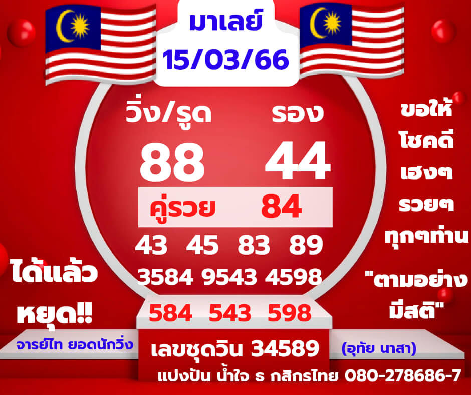 หวยมาเลย์ 15/3/66 เช็คผลหวยมาเลย์ magnum 4d หวยมาเลย์วันนี้ แบ่งปันหลากหลายแนวทางหวยมาเลย์แม่นๆ เข้าทุกงวด จากกลุ่มหวยมาเลย์ M4d แนะนำคอหวยแม็กนั่ม 4d ทุกท่าน อัพเดทเลขเด็ดเลขดัง 10 สูตรหวยมาเลย์เด็ดๆ เบอร์มาเลย์วันนี้ ออกอะไร ที่นี่