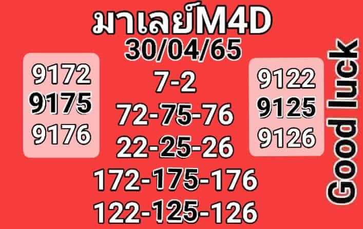 หวยมาเลย์ 30/4/65 สูตรหวยมาเลย์ฟรี