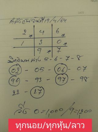 หวยลาว 19/4/64 หวยลาววันนี้ 4 ตัว