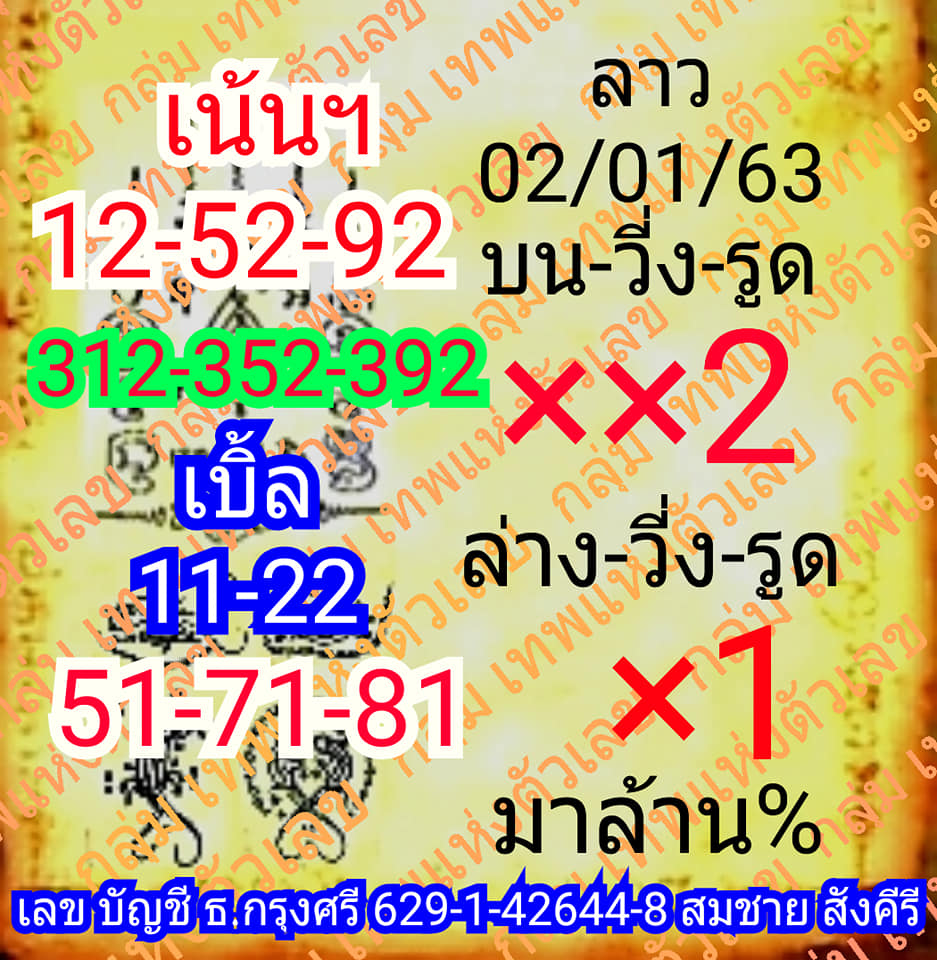 หวยลาว 2/1/63 รวมชุดเลขเด็ด