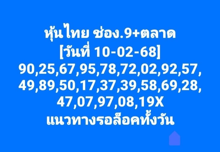 หวยหุ้น 10/2/68 อัพเดท 10 ชุดเจาะเลขเด่น สูตรเด็ด หวยหุ้นไทย เด่นทั้งวัน จากเซียนดังหลายสำนัก เพจหวยหุ้นแม่นๆ วันนี้ ขอแนะนำคอหวยหุ้น เซียนหวยหุ้นทุกท่าน พร้อมติดตามผลหุ้นไทยช่อง 9 และช่องตลาด บน-ล่าง เลขชุดหวยหุ้นเข้าทุกวันจันทร์-ศุกร์ ที่นี่
