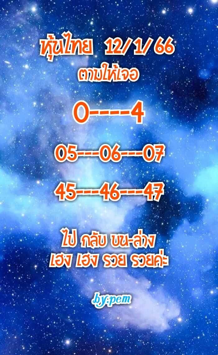 หวยหุ้น 12/1/66 หวยหุ้นไทยวันนี้ แบ่งปันหลากหลายแนวทางหวยหุ้นรายวัน จากเพจหวยหุ้นไทยแม่นๆ ฟรี แนะนำคอหวยหุ้นทุกท่าน อัพเดทสูตรหวยหุ้นช่อง 9 วิเคราะห์หวยหุ้นเด็ดๆ วันนี้ ออกอะไร พร้อมติดตามเลขชุดหวยหุ้นเข้าทุกวัน เช็คผลหุ้นไทยช่อง 9 บน-ล่าง ที่นี่