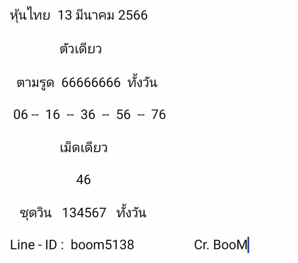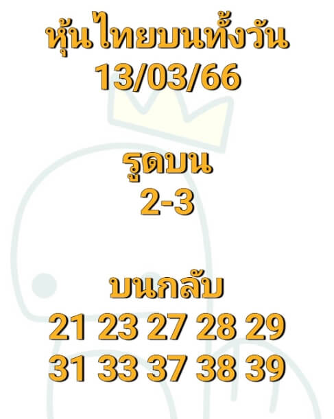 หุ้นไทยวันนี้ 13 มี.ค. 66 ขอแนะนำตารางคู่บวกลบหวยหุ้นไทยตัวเดียวแม่นๆ แนวทางเลขหุ้นฟันธง เลขหุ้นวันนี้แม่นๆ ติดตามวิเคราะห์หวยหุ้น 10 คู่ หวยหุ้นไทยเน้นบน หวยหุ้นแม่นทุกรอบวันนี้ฟรี