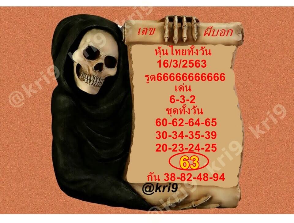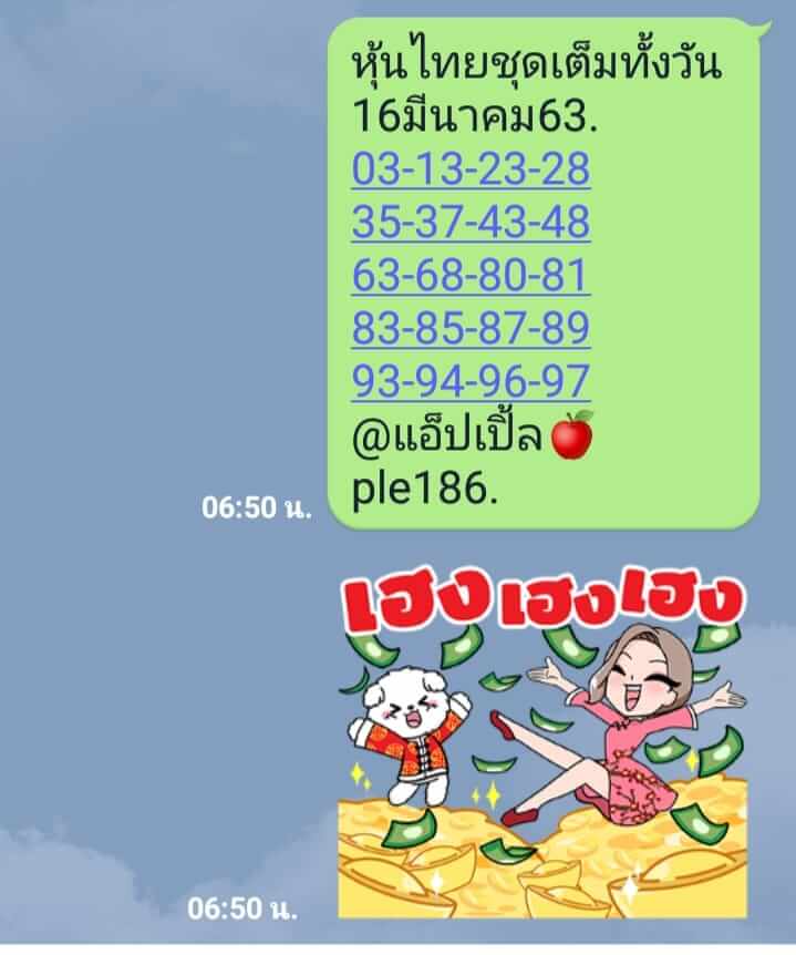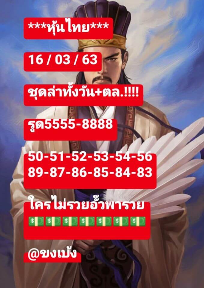 หวยหุ้น 16/3/63 ชุดเลขเด่นทั้งวัน