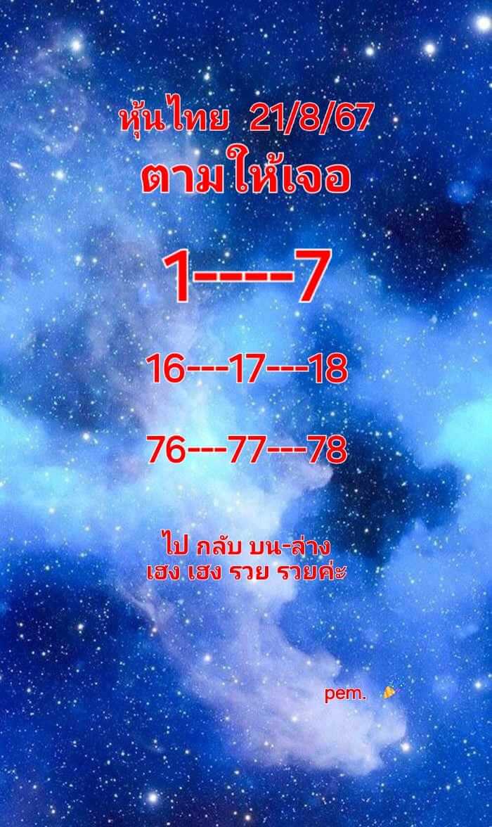 หวยหุ้น 21/8/67 หวยหุ้นไทย ชุดทั้งวัน อัพเดทเลขเด็ดเลขดัง หลากหลายแนวทาง หวยหุ้นวันนี้ออกอะไร จากหวยหุ้นไทยแม่นๆ แบ่งปันฟรี แนะนำคอหวยหุ้นทุกท่าน พร้อมติดตามผลหวยหุ้นไทยช่อง 9 และช่องตลาด บน-ล่าง ล่าสุด ที่นี่