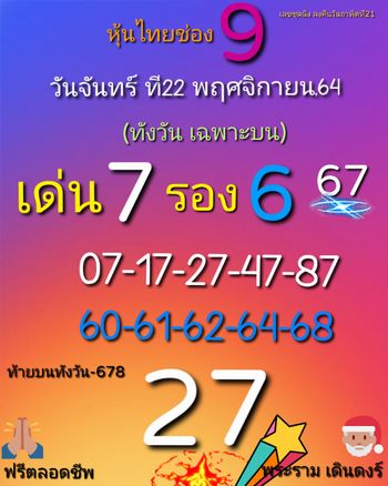 หวยหุ้น 22/11/64 สรุปฟันธงหวยหุ้นวันนี้