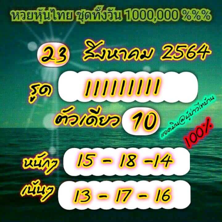หวยหุ้น 23/8/64 หวยหุ้นไทยชุดเดียวแม่นๆ ชุดทั้งวัน แบ่งปันเลขชุดหวยหุ้นเข้าทุกวัน ทีเด็ดหวยหุ้น รวบวรมจากเพจหวยหุ้นแม่นๆ มากกว่า 10 ชุดแนะนำคอหวยหุ้นทุกท่าน ดูหวยหุ้นแม่นทุกรอบวันนี้ อัพเดทตลาดหุ้นช่อง 9 แนวทางหวยหุ้นวันนี้ ออกอะไร ติดตามตรวจหวยหุ้น ดูผลหวยหุ้นวันนี้ ที่นี่