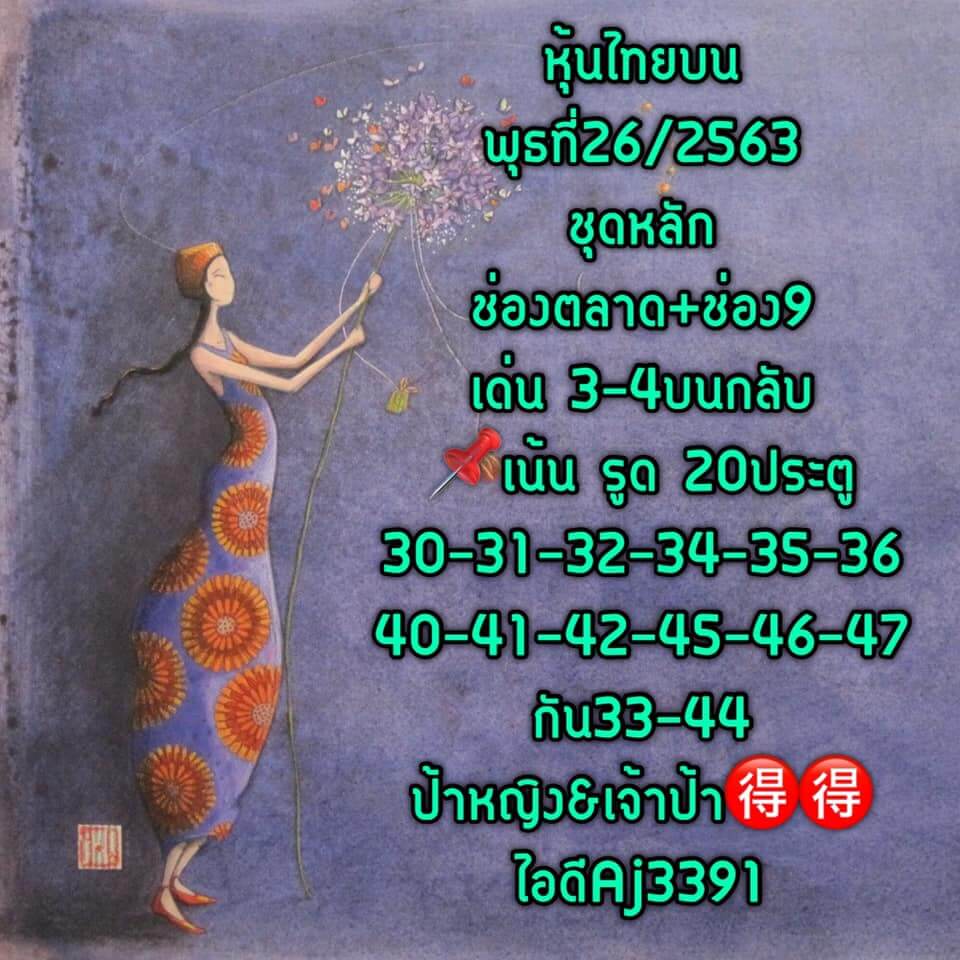 หวยหุ้น อัพเดทหวยหุ้นไทยงวดล่าสุด นำเสนอแนวทางหุ้นไทย 4 รอบ หวยหุ้น 26/2/63 จัดเต็มมาให้คอหวยได้เอาไปลุ้นกันอย่างหนำใจมากกว่า 10 ชุด มีทั้งเลขสามตัวบน และสองตัวล่าง อัพเดทหวยเด็ด เลขแม่นก่อนใครที่นี่เท่านั้น
