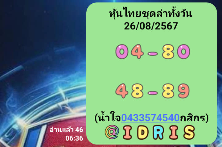 หวยหุ้น 26/8/67 อัพเดทเลขเด็ด เลขแม่นๆ หวยหุ้นไทย ชุดทั้งวัน หลากหลายแนวทาง จากเพจหวยหุ้นไทยแม่นๆ แบ่งปันฟรี แนะนำคอหวยหุ้นทุกท่าน พร้อมติดตามผลหวยหุ้นไทยช่อง 9 และช่องตลาด บน-ล่าง ล่าสุด ที่นี่