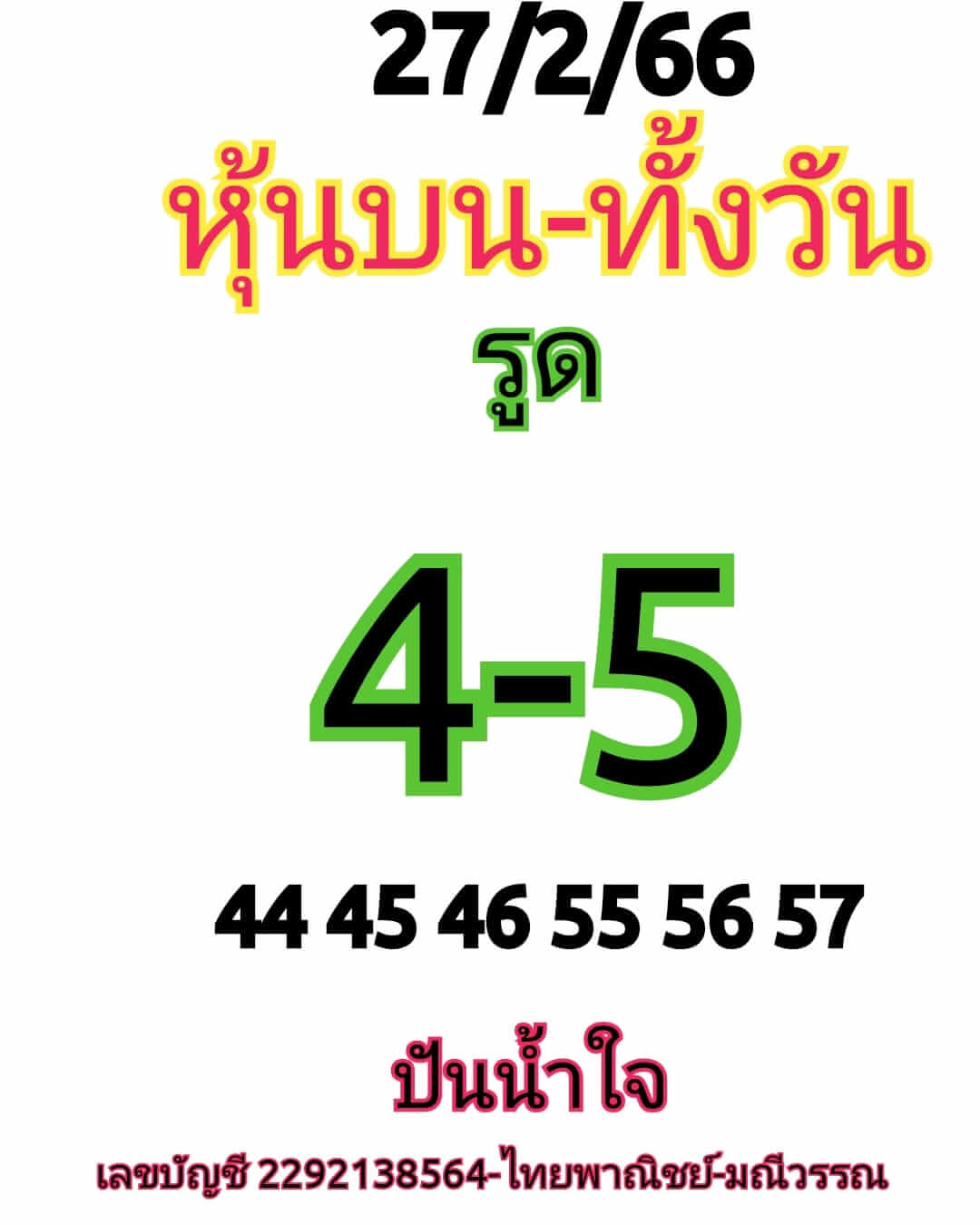 หุ้นไทยวันนี้ 27 ก.พ. 66 ขอแนะนำตารางคู่บวกลบหวยหุ้นไทยตัวเดียวแม่นๆ แนวทางเลขหุ้นฟันธง เลขหุ้นวันนี้แม่นๆ ติดตามวิเคราะห์หวยหุ้น 10 คู่ หวยหุ้นไทยเน้นบน หวยหุ้นแม่นทุกรอบวันนี้ฟรี