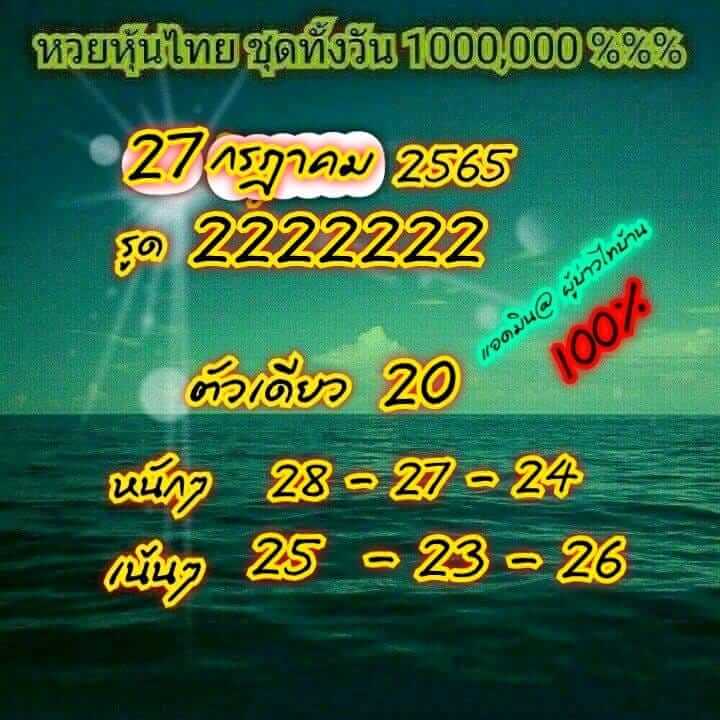 หวยหุ้น 27/7/65 วิเคราะห์หวยหุ้นฟรี