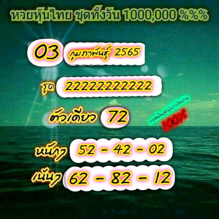 แนวทางหวยหุ้นวันพฤหัสบดีที่ 3 กุมภาพันธ์ 2565 ขอแนะนำชุดเลขหุ้นวันนี้แม่นๆ ตารางคู่บวกลบหวยหุ้นไทยตัวเดียว วิเคราะห์หวยหุ้นเด็ดวันนี้ สรุปฟันธงหวยหุ้นเน้นบน หวยหุ้นไทยบน จากชมรมคนรักหวยหุ้น สูตรหวยหุ้น 4 รอบฟรี