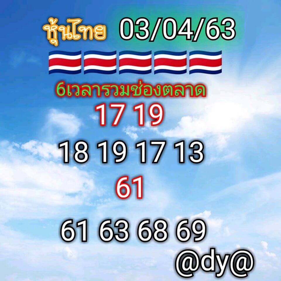 หวยหุ้น อัพเดทแล้วแนวทางหวยหุ้นไทย รวบรวมมาให้ทุกท่านได้นำไปเสี่ยงโชคกัน หวยหุ้น 3/4/63 สูตรวิเคราะห์หวยหุ้นวันนี้ มีทั้งชุดเลขเด่น ชุดจับคู่เลขท้าย 3 ตัว และ 2 ตัว มีมาให้คอหวยได้รับชมกันมากกว่า 10 ชุด พร้อมติดตามการอัพเดทผลหวยหุ้นได้ทุกรอบที่นี่