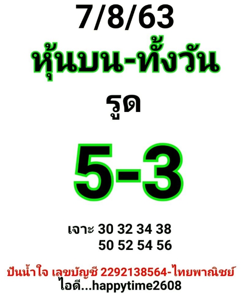 หวยหุ้น 7/8/63 เจาะเลขเด็ด หวยหุ้นไทยวันนี้