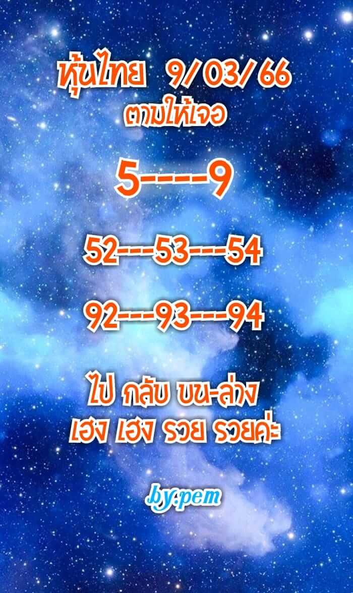 หุ้นไทยวันนี้ 9 มี.ค. 66 ขอแนะนำตารางคู่บวกลบหวยหุ้นไทยตัวเดียวแม่นๆ แนวทางเลขหุ้นฟันธง เลขหุ้นวันนี้แม่นๆ ติดตามวิเคราะห์หวยหุ้น 10 คู่ หวยหุ้นไทยเน้นบน หวยหุ้นแม่นทุกรอบวันนี้ฟรี