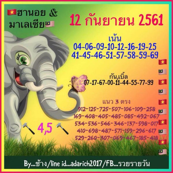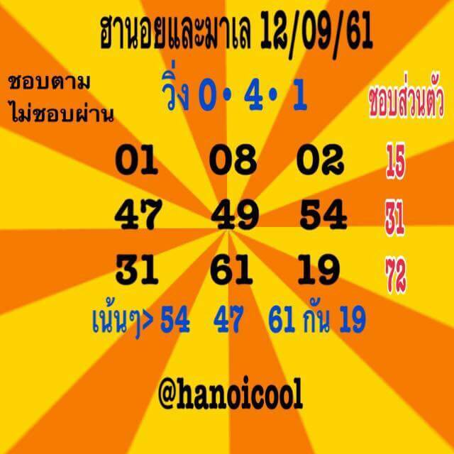 วิเคราะห์ รวมชุดหวยฮานอย12/9/61