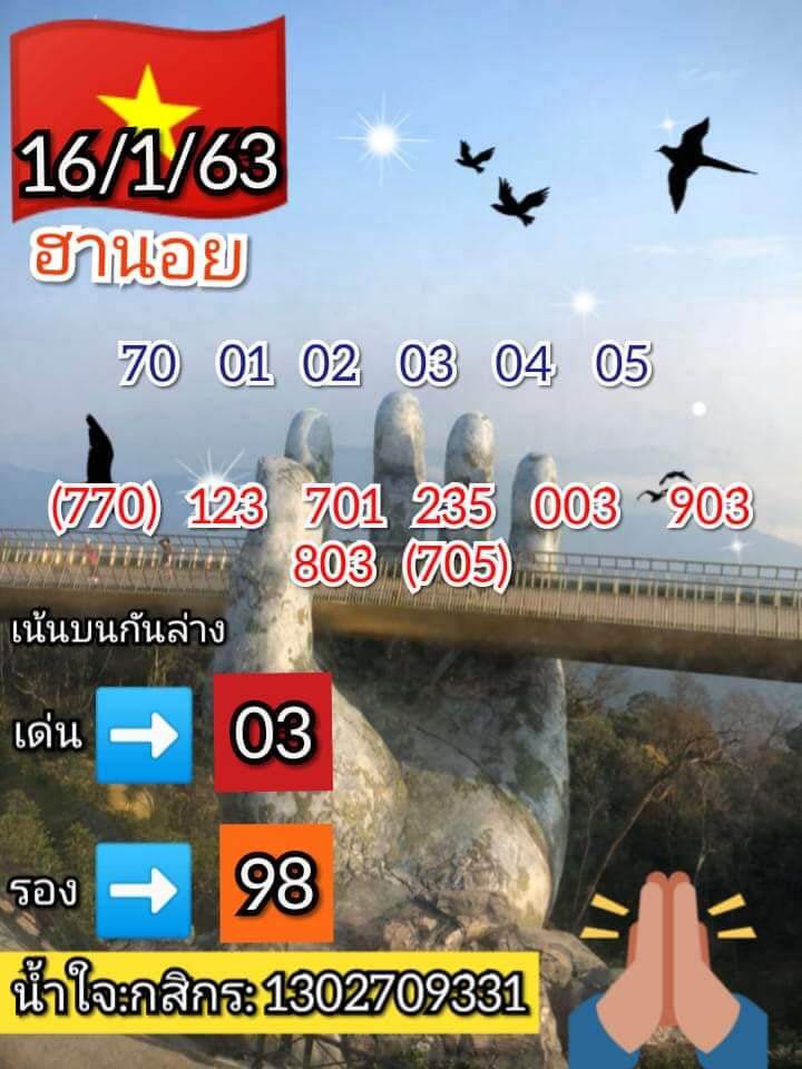 หวยฮานอย 16/1/63 สูตรเลขเด็ดงวดนี้