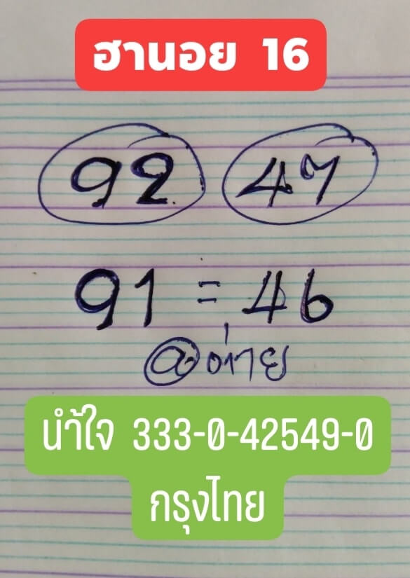 หวยฮานอย 16/12/62 เด่นบน-เด่นล่าง