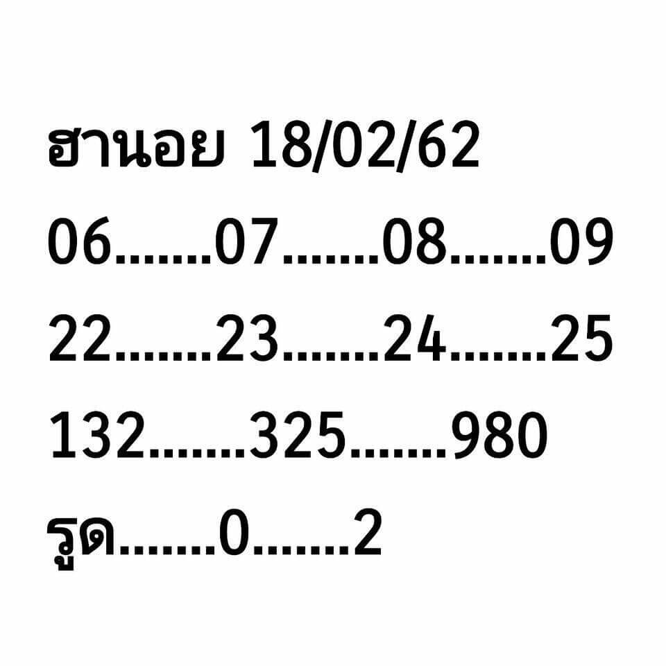 แจกสูตรเด็ด หวยฮานอย 18/2/62