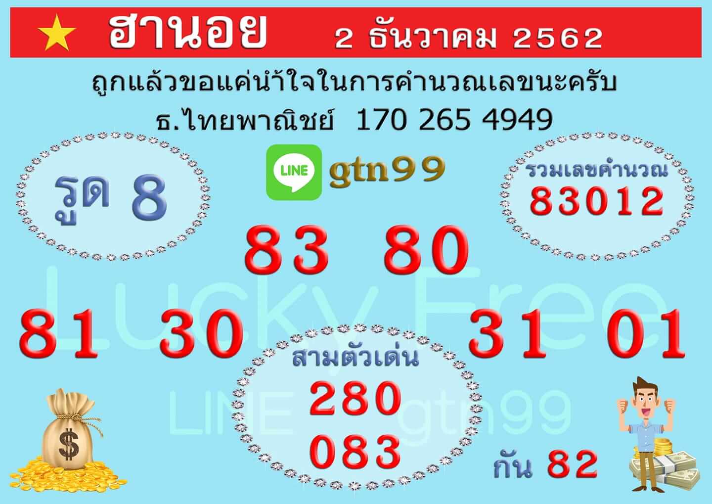 หวยฮานอย 2/12/62 สรุปเลขแม่นบน-ล่าง