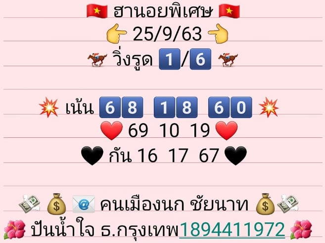 หวยฮานอย 25/9/63 ชุดที่ 1