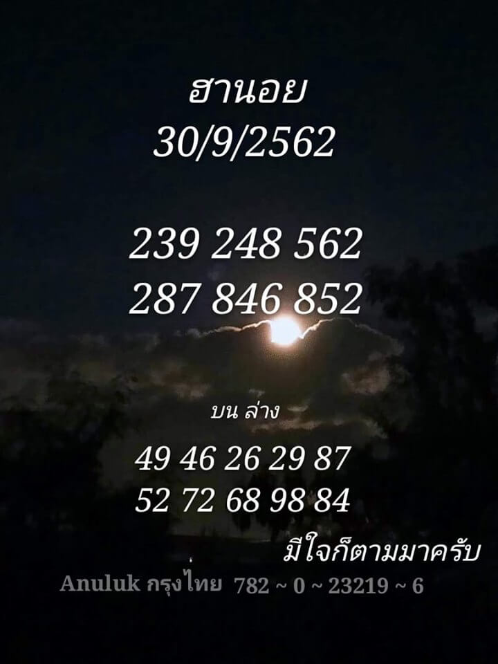 หวยฮานอย 30/9/62 รวมชุดเลขแม่น